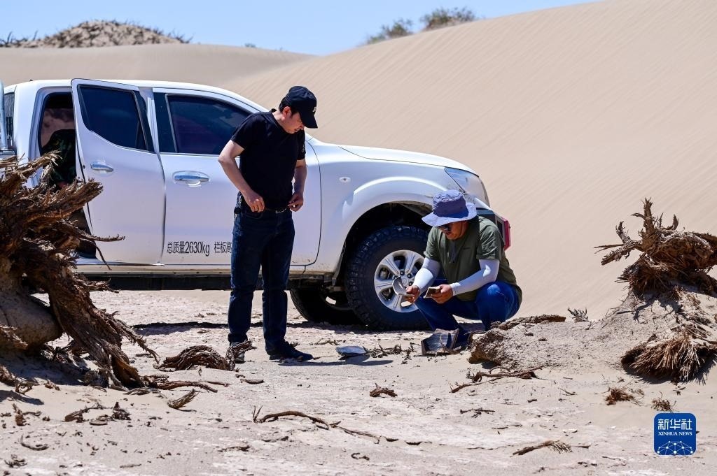 6月2日,額濟(jì)納旗文物保護(hù)中心工作人員在居延遺址核心區(qū)巡護(hù)。