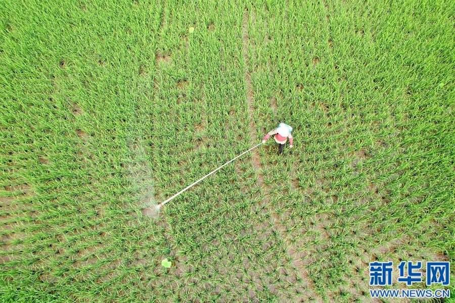 近日,在江西省撫州市廣昌縣,3.4萬多畝早稻正逐步進入分蘗期,稻田里綠油油一片,禾苗根壯、長勢喜人。農(nóng)民正忙著噴灑農(nóng)藥,進行防治病蟲害作業(yè),為夏糧豐產(chǎn)豐收打下基礎(chǔ)。(危仁鵬 徐維棟)