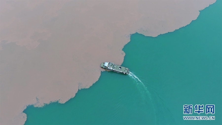 受近期長江上游持續(xù)降雨影響,位于重慶涪陵的長江與烏江交匯處,兩江因含沙量不同而顏色對(duì)比鮮明,形成猶如重慶火鍋中“鴛鴦鍋”景觀。新華網(wǎng)發(fā) (夏雷 攝)