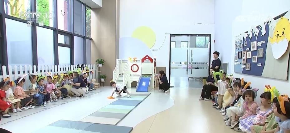 托育中心按照每個班2名幼師、1名保育員的配置對幼兒進行照護。每個月還會設計主題游戲活動,促進孩子的身體發(fā)展、情感自理能力以及社交能力等。