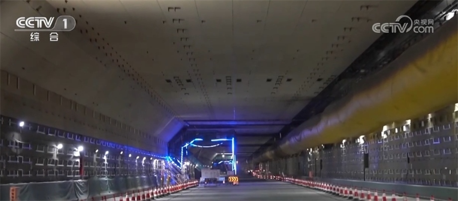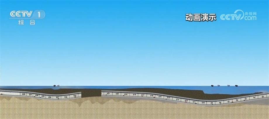 總臺央視記者 李偉代:我身后就是深中通道西人工島,它是深中通道橋隧轉(zhuǎn)換的關(guān)鍵構(gòu)造;從這里開始,深中通道將從橋梁部分轉(zhuǎn)入全長6845米海底隧道部分,未來汽車將從這里駛?cè)牒5姿淼溃钌顚⒃诤5?0米的沉管中行駛。