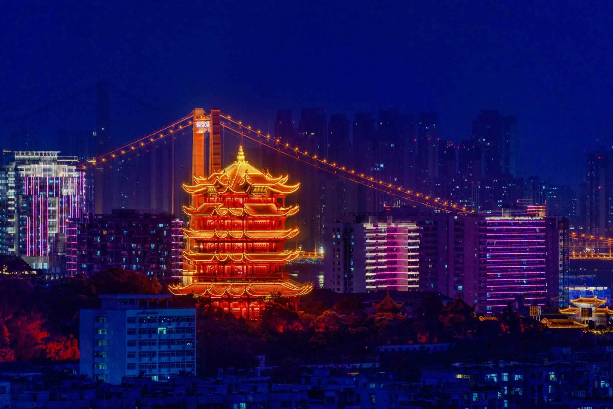 武漢:黃鶴樓與鸚鵡洲大橋同框