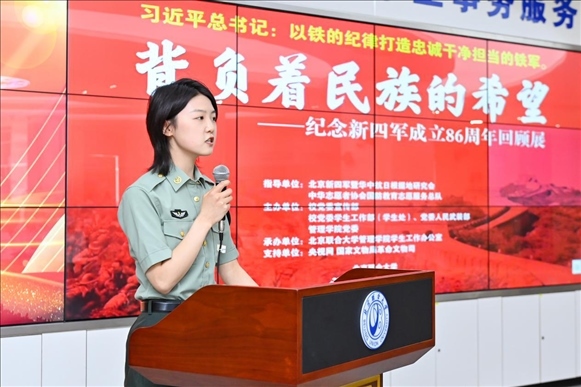 為深入學習貫徹習近平新時代中國特色社會主義思想主題教育,落實習近平加強全民國防教育的重要指示精神,弘揚愛國主義精神、增強全民國防意識,推動全民國防教育進校園,深化學校“大思政課”建設,6月9日,由北京新四軍暨華中抗日根據(jù)地研究會、中華志愿者協(xié)會國防教育志愿服務總隊指導,北京聯(lián)合大學黨委學生工作部(學生處)、黨委人民武裝部、黨委宣傳部、北京聯(lián)合大學新時代文明實踐中心建設規(guī)劃研究所、管理學院黨委共同主辦,管理學院學生工作辦公室承辦的“背負民族希望——紀念新四軍成立86周年回顧展”大會在北四環(huán)校區(qū)學生事務大廳舉行。