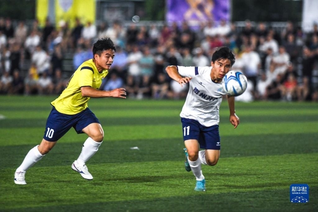 6月9日,鳳凰村足球隊與新中村足球隊在“村超”比賽中。