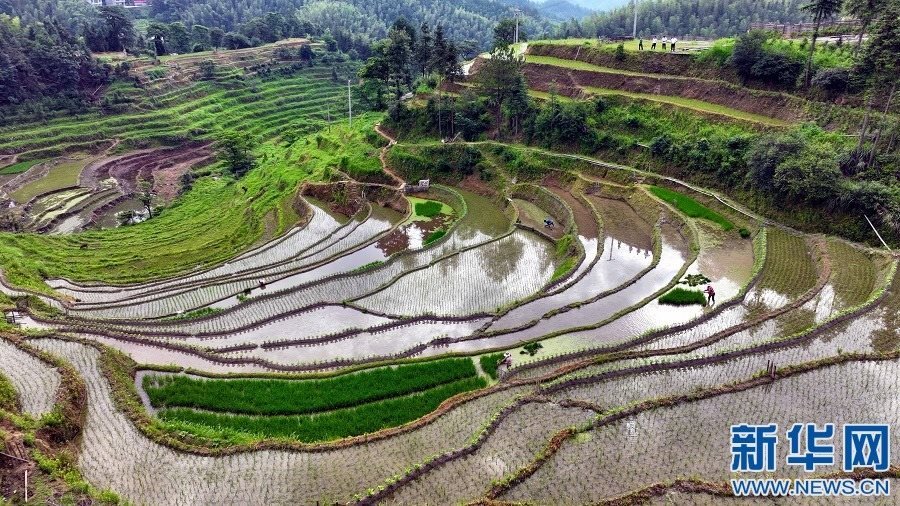 近日,江西省宜春市萬(wàn)載縣高村鎮(zhèn)新竹村村民在高山梯田勞作,忙碌的身影與層層疊疊的梯田交相輝映。新華網(wǎng)發(fā) 鄧龍華 攝