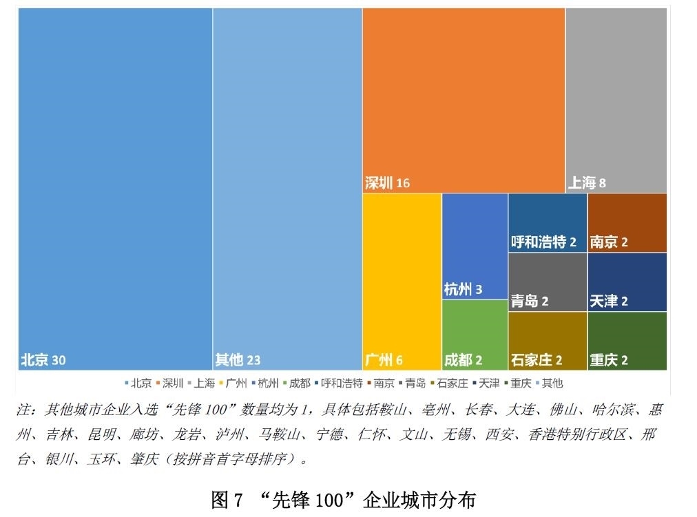 從城市維度觀察,北京、深圳、上海和廣州的“先鋒100”企業(yè)占比達(dá)到了六成左右,其中北京占比最高,北京(30家)、深圳(16家)、上海(8家)、廣州(6家)正在成為ESG建設(shè)的先行示范區(qū)。