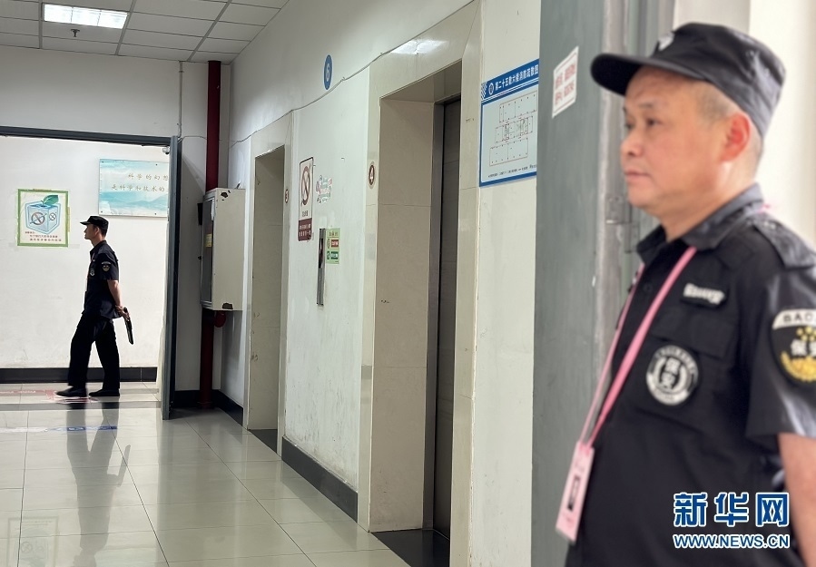 全國統(tǒng)考科目西南大學評卷點,安保人員正在執(zhí)勤。新華網(wǎng) 彭浩然 攝