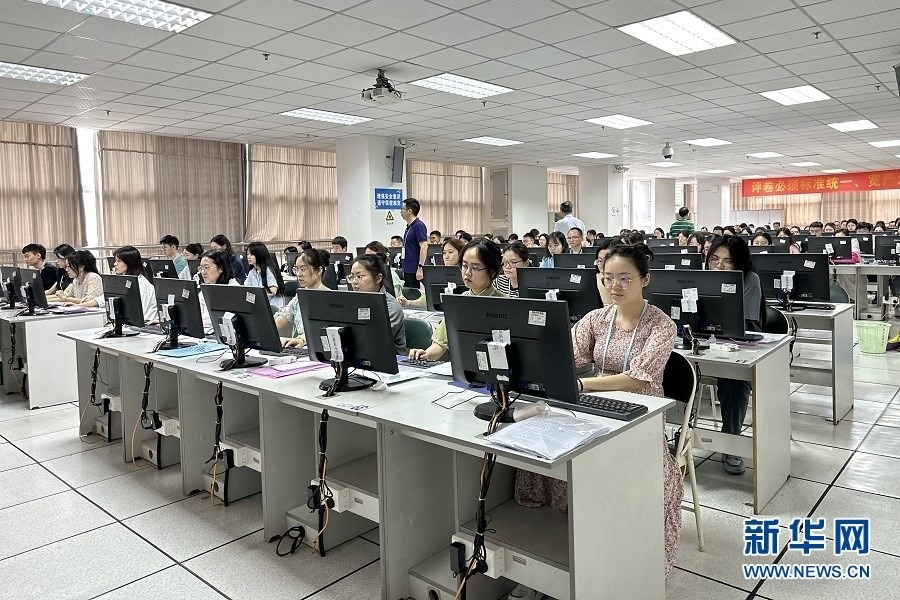 6月13日,全國統(tǒng)考科目西南大學評卷點,評卷教師正在閱卷。新華網(wǎng) 彭浩然 攝