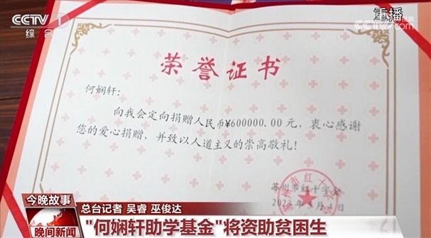 經(jīng)過安徽省紅十字會(huì)和江蘇省蘇州市紅十字會(huì)的聯(lián)系協(xié)調(diào),何嫻軒老人的善款最終被定向捐獻(xiàn)給她家鄉(xiāng)安徽省的天長(zhǎng)中學(xué),用于資助品學(xué)兼優(yōu)的貧困學(xué)生。