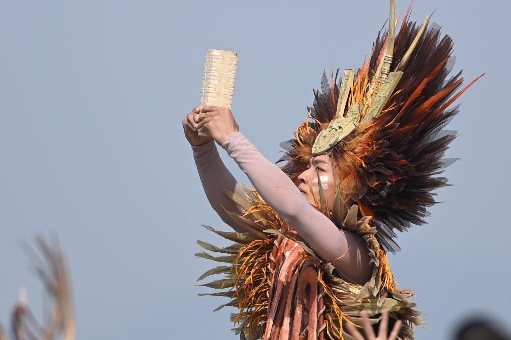 亞運火種在良渚古城遺址公園大莫角山