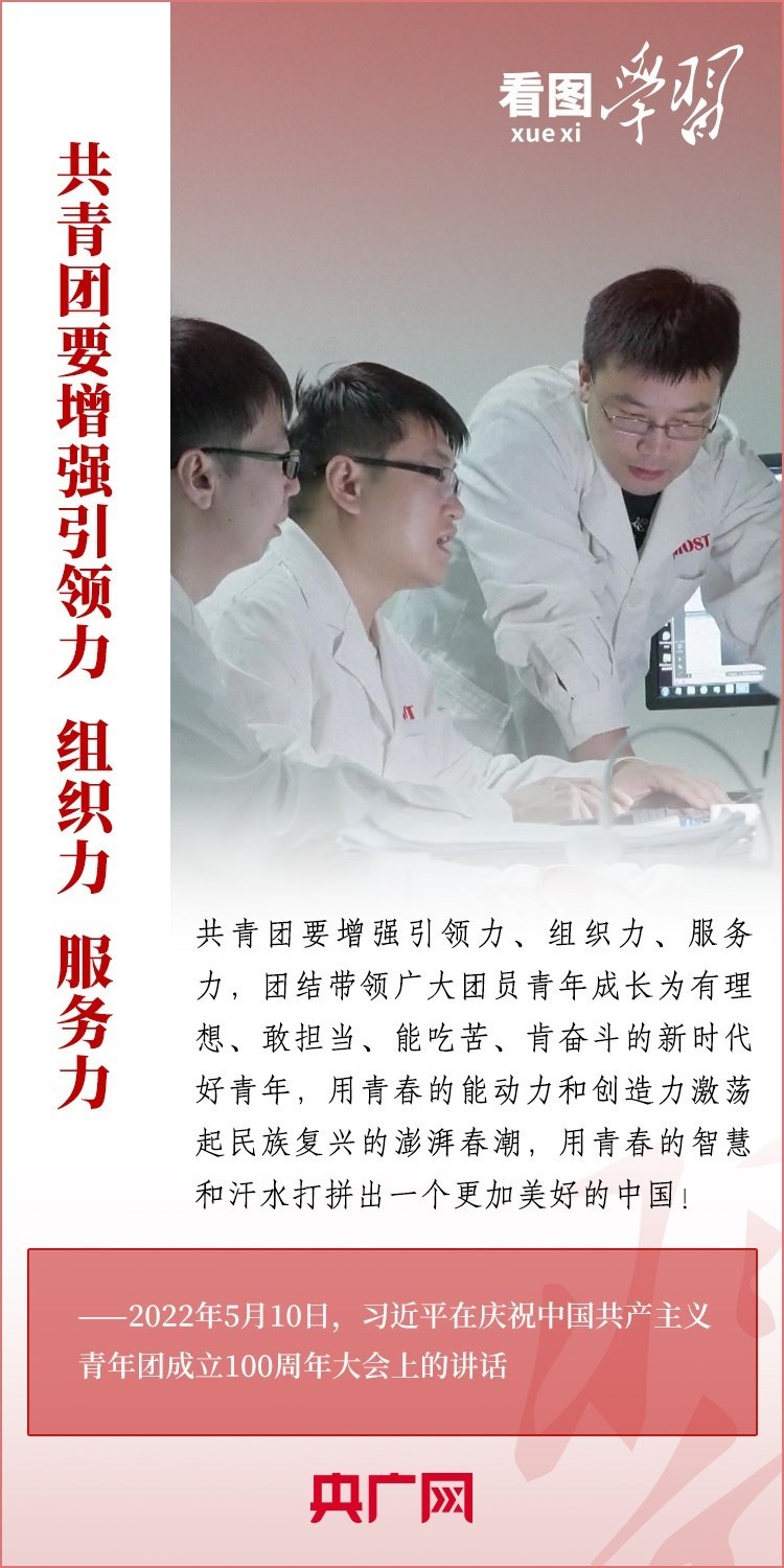 中國(guó)共青團(tuán)是中國(guó)青年運(yùn)動(dòng)的先鋒隊(duì),是黨的忠實(shí)助手和可靠后備軍。習(xí)近平總書記高度重視共青團(tuán)工作,強(qiáng)調(diào)共青團(tuán)要增強(qiáng)引領(lǐng)力、組織力、服務(wù)力,團(tuán)結(jié)帶領(lǐng)廣大團(tuán)員青年成長(zhǎng)為有理想、敢擔(dān)當(dāng)、能吃苦、肯奮斗的新時(shí)代好青年,用青春的能動(dòng)力和創(chuàng)造力激蕩起民族復(fù)興的澎湃春潮,用青春的智慧和汗水打拼出一個(gè)更加美好的中國(guó)!