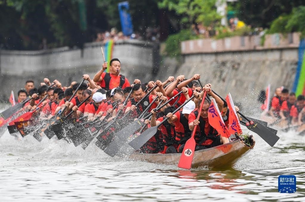 賽龍奪錦代表一種人生態(tài)度,更有著豐富的精神內(nèi)涵。對于車陂這樣的“城中村”而言,族人在端午回村里劃龍舟、吃龍船飯。龍舟如今既是留住文化記憶的重要載體,更是新都市如何留住老鄉(xiāng)愁的一份珍貴答卷。新華社記者 劉大偉 攝
