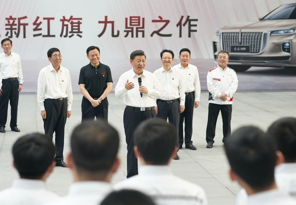 2020年7月23日下午,習(xí)近平在吉林省長(zhǎng)春市一汽集團(tuán)研發(fā)總院,同職工代表親切交流。