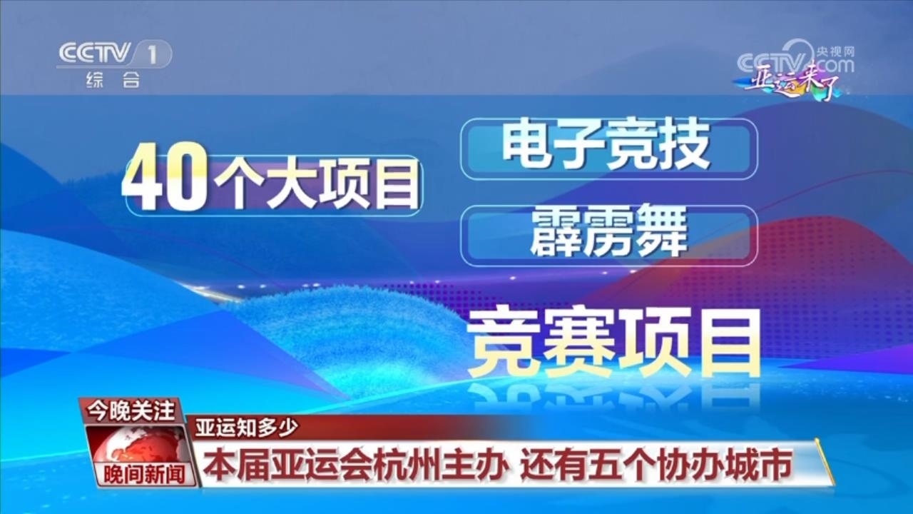 杭州亞運會以杭州為主辦城市,寧波、溫州、湖州、紹興、金華為五個協(xié)辦城市。本屆亞運會競賽項目在保持40個大項目不變的前提下,增設(shè)電子競技、霹靂舞兩個競賽項目。16個比賽日,預(yù)計共產(chǎn)生482枚金牌。?