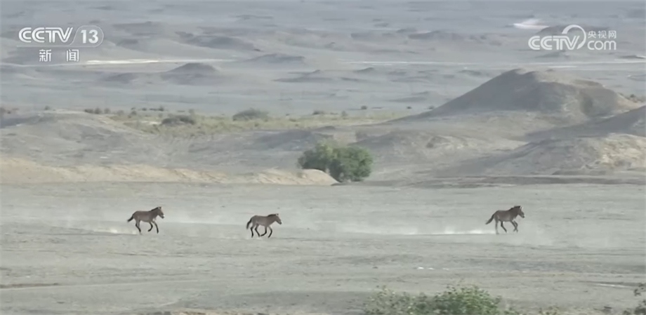 總臺(tái)記者 安文劍:這里是位于甘肅敦煌的西湖國(guó)家級(jí)自然保護(hù)區(qū),16日上午,第一批普氏野馬走出了它們長(zhǎng)期生活的半散養(yǎng)區(qū),進(jìn)入了廣闊的大自然。這是1985年“野馬返鄉(xiāng)計(jì)劃”提出以來,首次實(shí)現(xiàn)普氏野馬的自然放歸。