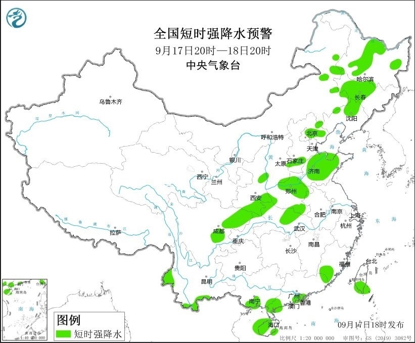 央視網(wǎng)消息:據(jù)中央氣象臺(tái)網(wǎng)站消息,中央氣象臺(tái)9月17日18時(shí)繼續(xù)發(fā)布強(qiáng)對(duì)流天氣藍(lán)色預(yù)警。預(yù)計(jì)9月17日20時(shí)至18日20時(shí),內(nèi)蒙古東部、黑龍江南部和東北部、吉林中西部、遼寧中西部、陜西北部和中部、山西北部和東南部、河北東北部和南部、北京東北部、天津北部、山東西北部、河南中北部和東部、湖北北部等地的部分地區(qū)將有8-10級(jí)雷暴大風(fēng)或冰雹天氣,局地風(fēng)力可達(dá)11級(jí)以上;內(nèi)蒙古東部、黑龍江中西部、吉林中西部、遼寧西部和北部、陜西南部、河北東北部和南部、北京東北部、天津北部、山東中西部、河南北部和東部、湖北中部和西部、福建南部、四川盆地中東部、云南西部和南部、廣西南部、廣東西南部、海南島、臺(tái)灣島南部等地的部分地區(qū)將有短時(shí)強(qiáng)降水天氣,最大小時(shí)雨量20-50毫米,局地可達(dá)60毫米以上。
