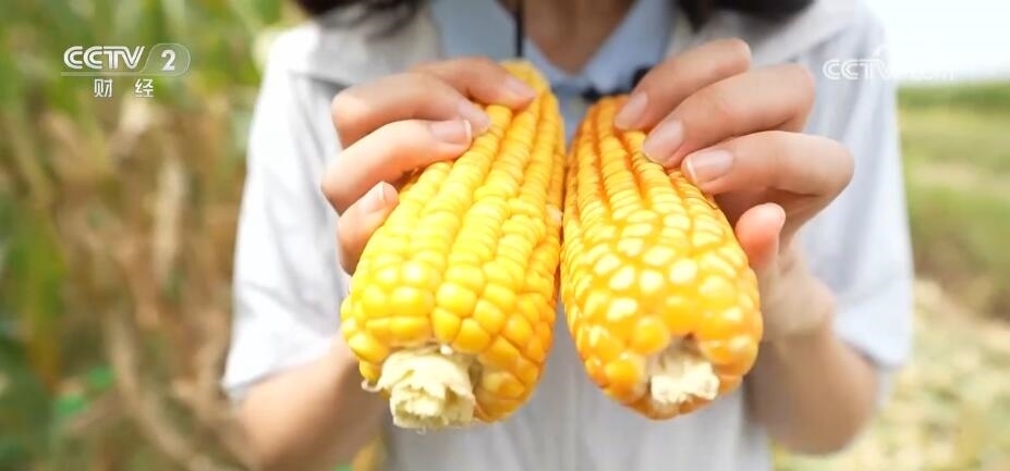 今年儲大姐家玉米長得到底咋樣?你看我手里拿著這兩個玉米棒,左手就是儲大姐家的高密植玉米,右手是傳統(tǒng)種植的玉米,一對比很明顯,左手的玉米雖然看起來沒有傳統(tǒng)種植的個頭大,但是你看,籽粒長到了頂,棒芯小籽粒更緊實,分量更沉一些,可以說它很精壯。儲大姐也告訴我,這片田的玉米單產(chǎn)今年能夠達(dá)到850公斤以上,比傳統(tǒng)種植玉米單產(chǎn)提高了整整200公斤。