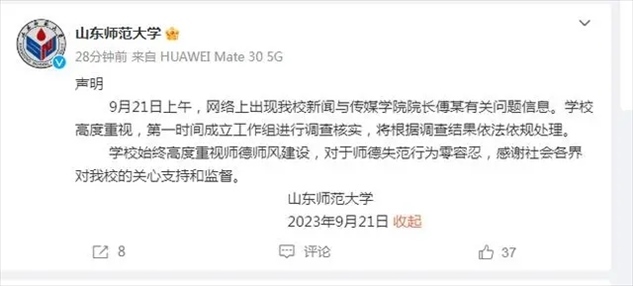 ·青年女教師舉報遭博導侵害,山東師范大學回應:正在調查核實。