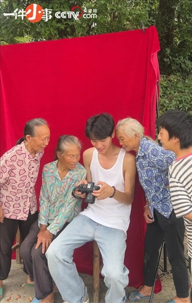 今年24歲的小吳來自福建三明,是一名全職的自媒體“UP主”。前不久的一天,奶奶忽然問他,平時老拿著相機對著她拍來拍去,有沒有合適的照片可以洗出來,以后用得到。祖孫倆一合計,干脆去村口,把村里的老人都叫來拍。在村口架好設備后,村里的老人也基本都來了,有十多位。他們聚在一起,有說有笑,你笑我沒了牙,我調侃你不剩幾根頭發(fā)。拍攝的過程很長,大多數(shù)時間都是在等他們梳妝打扮,努力讓自己在鏡頭前呈現(xiàn)最好的儀態(tài)。