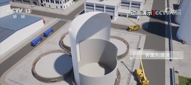 在外膜充氣成型后,整個施工過程都在膜內(nèi)進(jìn)行,施工過程機(jī)械化程度高、安全環(huán)保,幾乎不受環(huán)境和天氣影響。