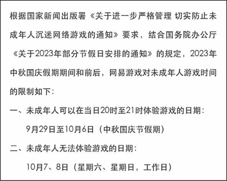 ·多個(gè)游戲平臺(tái)發(fā)布中秋國(guó)慶假期未成年人游戲限時(shí)通知。