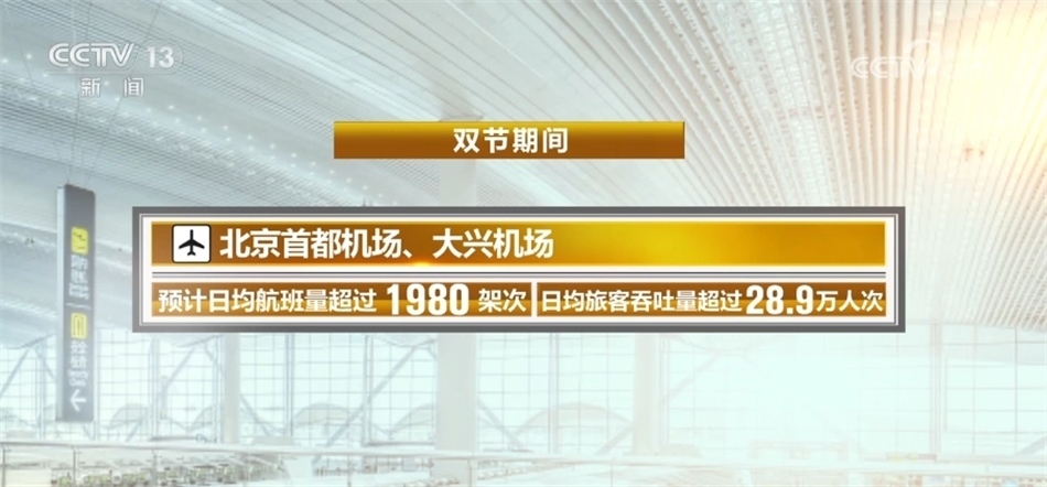 ?????? 民航方面,“雙節(jié)”期間,北京首都機(jī)場(chǎng)、大興機(jī)場(chǎng)預(yù)計(jì)日均航班量超過(guò)1980架次,日均旅客吞吐量超過(guò)28.9萬(wàn)人次。