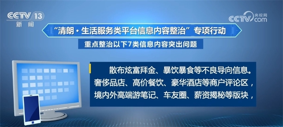 此次專項(xiàng)行動(dòng)覆蓋團(tuán)購評價(jià)、婚戀交友、搜索引擎、影視點(diǎn)評、天氣日歷、旅游出行、網(wǎng)絡(luò)購物、地圖導(dǎo)航、本地生活、運(yùn)動(dòng)健康、實(shí)用工具等各類生活服務(wù)平臺(tái),重點(diǎn)整治以下7類信息內(nèi)容突出問題?! ?/p>