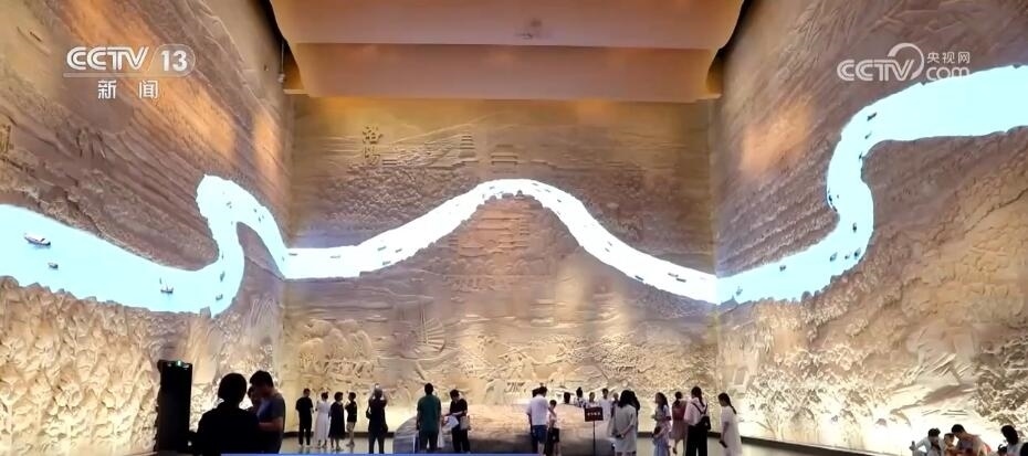 此外,不同于“文物+講解”的傳統(tǒng)展覽形式,博物館試圖將隋唐大運河整體“搬進”展廳。在這里,游客不僅能近距離觀察從古洛河河道中打撈出的“洛陽運河一號”古沉船,還能在浮雕墻前縱覽大運河脈絡(luò)全貌,更能走進精致復(fù)原的新潭碼頭,與歷史“對話”。