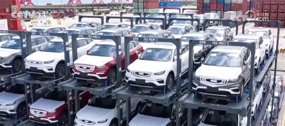 在太倉(cāng)港汽車出口碼頭,一輛裝載了2797臺(tái)新能源車的船當(dāng)天將從太倉(cāng)出發(fā)駛往南美。為了滿足新能源車的運(yùn)輸功能,這艘船做了相應(yīng)改裝。艙內(nèi)配備紅外線溫度成像裝置和新能源車“一對(duì)一”實(shí)時(shí)溫度監(jiān)控系統(tǒng),一旦溫度過(guò)高就會(huì)開(kāi)啟噴淋裝置。此外,為了滿足傳統(tǒng)汽車滾裝船運(yùn)力不足的情況,太倉(cāng)港和運(yùn)輸企業(yè)還開(kāi)發(fā)出了用定制集裝箱框裝載汽車,發(fā)揮集裝箱船的運(yùn)力。根據(jù)統(tǒng)計(jì),今年1—6月份,太倉(cāng)港完成整車出口17萬(wàn)輛,已經(jīng)超過(guò)去年全年的汽車出口量,其中,新能源車占比超過(guò)一半。