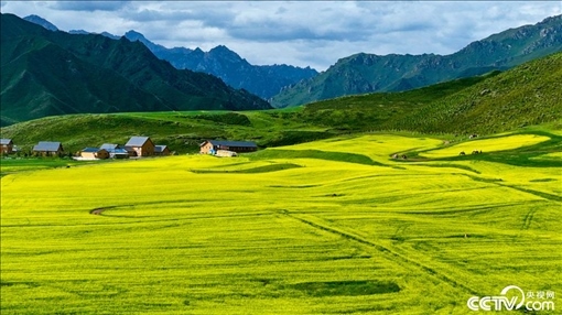 2023年7月14日,甘肅張掖,萬畝油菜花田進(jìn)入盛花期,金色的花海美不勝收。