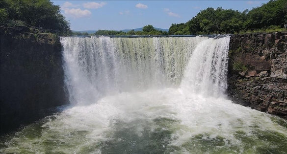 隨著雨季的到來(lái),黑龍江牡丹江鏡泊湖吊水樓瀑布幅寬日益加大。百米長(zhǎng)瀑,宛如鏡泊湖之眼,吸引著四面八方的游客圍瀑賞景。