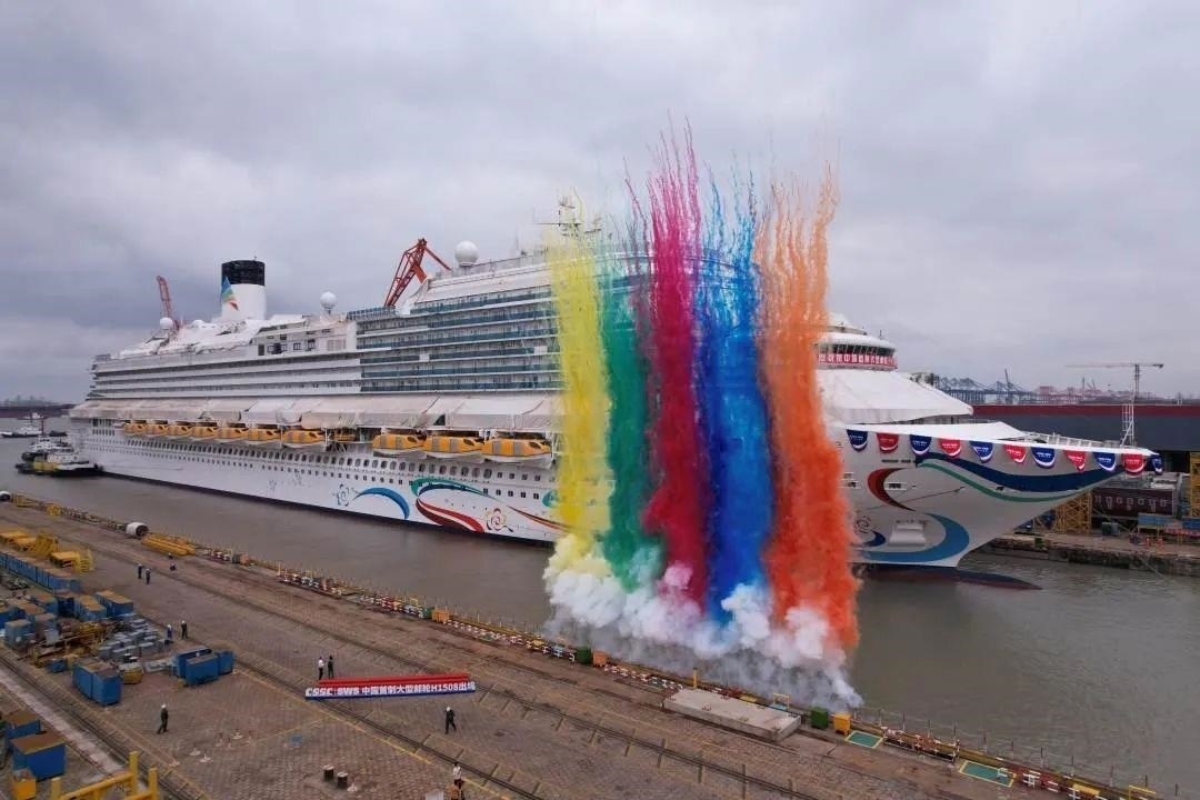 △2023年6月6日,首艘國產大型郵輪愛達 魔都號在上海外高橋造船廠完成塢內系列試驗后正式出塢。