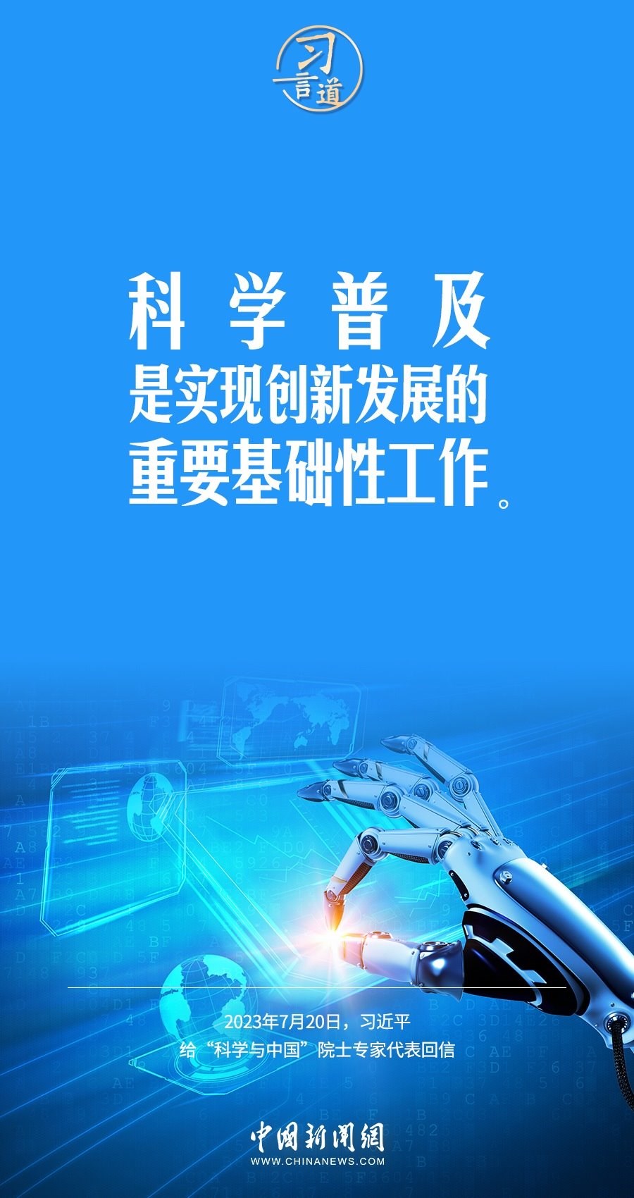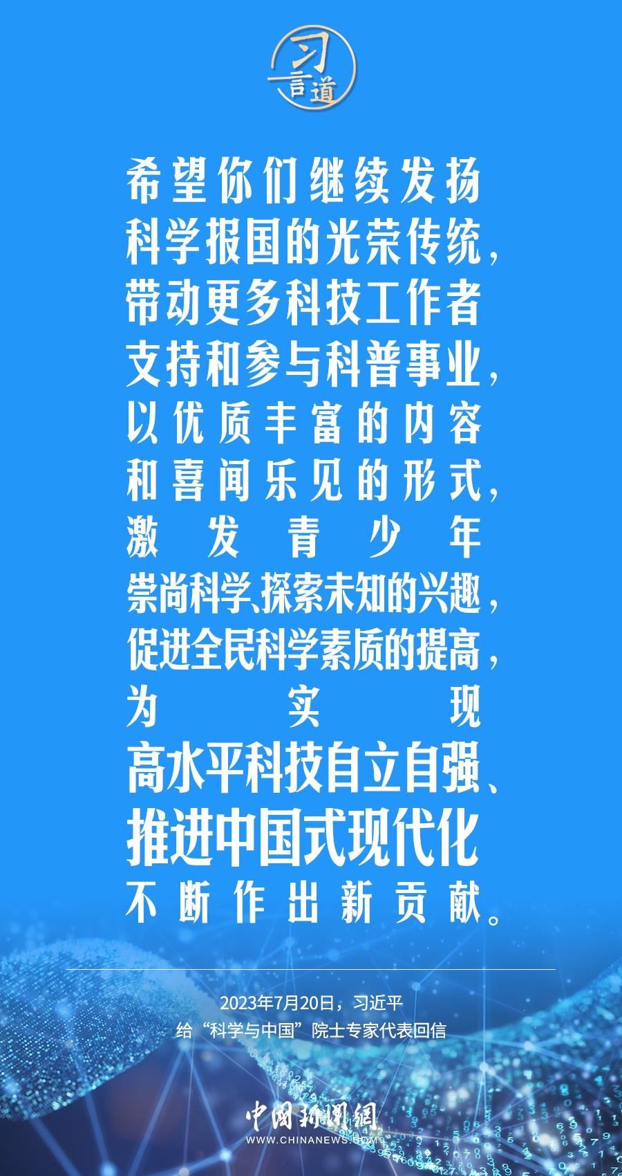 中共中央總書記、國(guó)家主席、中央軍委主席習(xí)近平7月20日給“科學(xué)與中國(guó)”院士專家代表回信,對(duì)科技工作者支持和參與科普事業(yè)提出殷切期望。他指出——