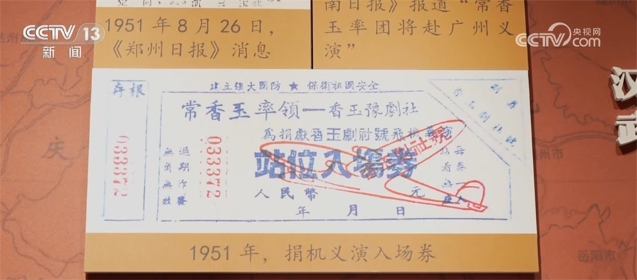 從1951年8月到1952年2月,香玉劇社行程萬里,義演了170多場,從劇社成員到普通觀眾,大家踴躍捐獻(xiàn),在半年的時間里實現(xiàn)了義演募捐15.2億多人民幣(舊幣)的計劃,順利完成了向中國人民志愿軍捐獻(xiàn)戰(zhàn)斗機(jī)的愛國行動。