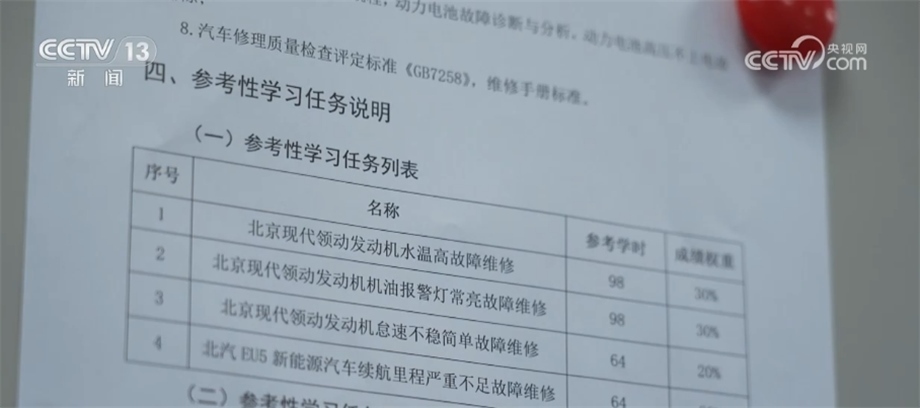 面對龐大的售后維修市場,各家院校先后與企業(yè)展開深度合作,對油轉(zhuǎn)電的技師進行培訓(xùn)和技能認定,通過企業(yè)新型學(xué)徒制等多種方式破解人才短缺困境。截至目前,北京市工業(yè)技師學(xué)院已為多家企業(yè)代培近5000名新能源技師。在學(xué)校的車間辦公區(qū)里,記者看到了一張針對不同品牌車型而設(shè)置的課程表。