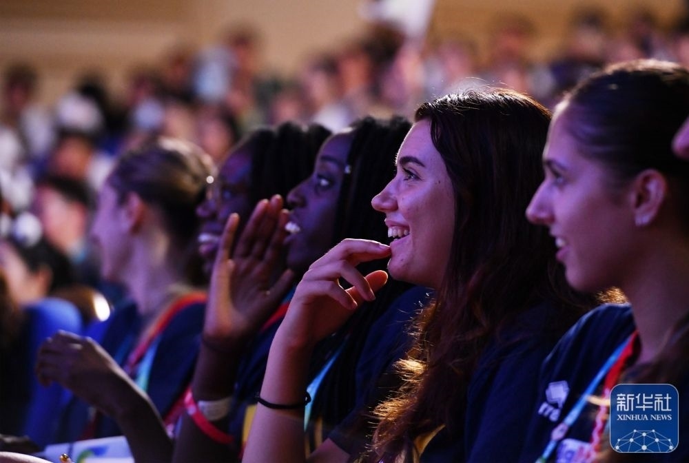 ↑7月29日,外國運(yùn)動員在聯(lián)歡會現(xiàn)場觀看節(jié)目。新華社記者 張端 攝