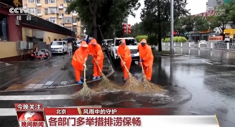 為應(yīng)對(duì)今年以來(lái)北京最強(qiáng)降雨天氣,在順義,巡查人員雨中對(duì)管養(yǎng)范圍內(nèi)積水點(diǎn)、路樹(shù)、橋梁等重點(diǎn)部位不間斷巡視;昌平公路分局在山區(qū)公路地質(zhì)災(zāi)害易發(fā)路段設(shè)置值守點(diǎn);懷柔區(qū)環(huán)衛(wèi)公司緊急成立防汛應(yīng)急小組,對(duì)道路積水開(kāi)展人工推水作業(yè),撿拾雨箅子上的雜物和樹(shù)葉,方便市民出行。