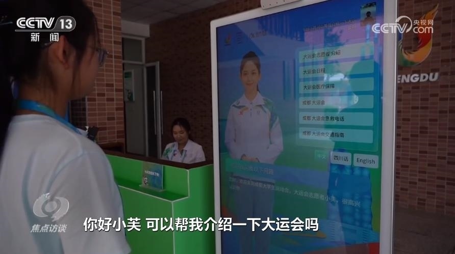 本屆大運會的虛擬志愿者小芙,通過先進的語音合成、AI口唇表情驅(qū)動、圖像處理等技術(shù),能夠使用普通話、四川話和英文,和攝像頭識別出的對象進行“面對面”的直接交流。這套系統(tǒng)的研發(fā)者之一雷曉輝是一名“90后”工程師。
