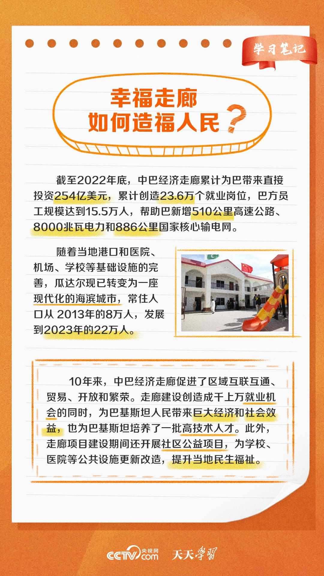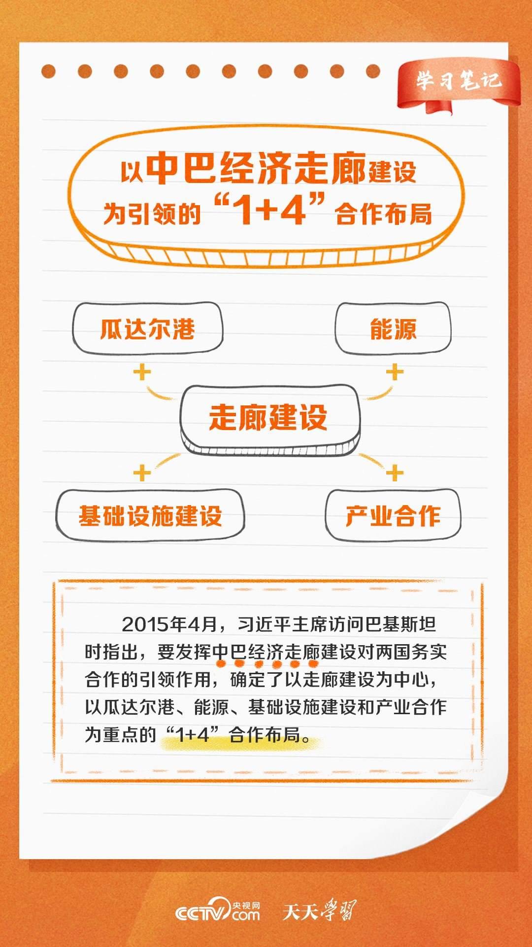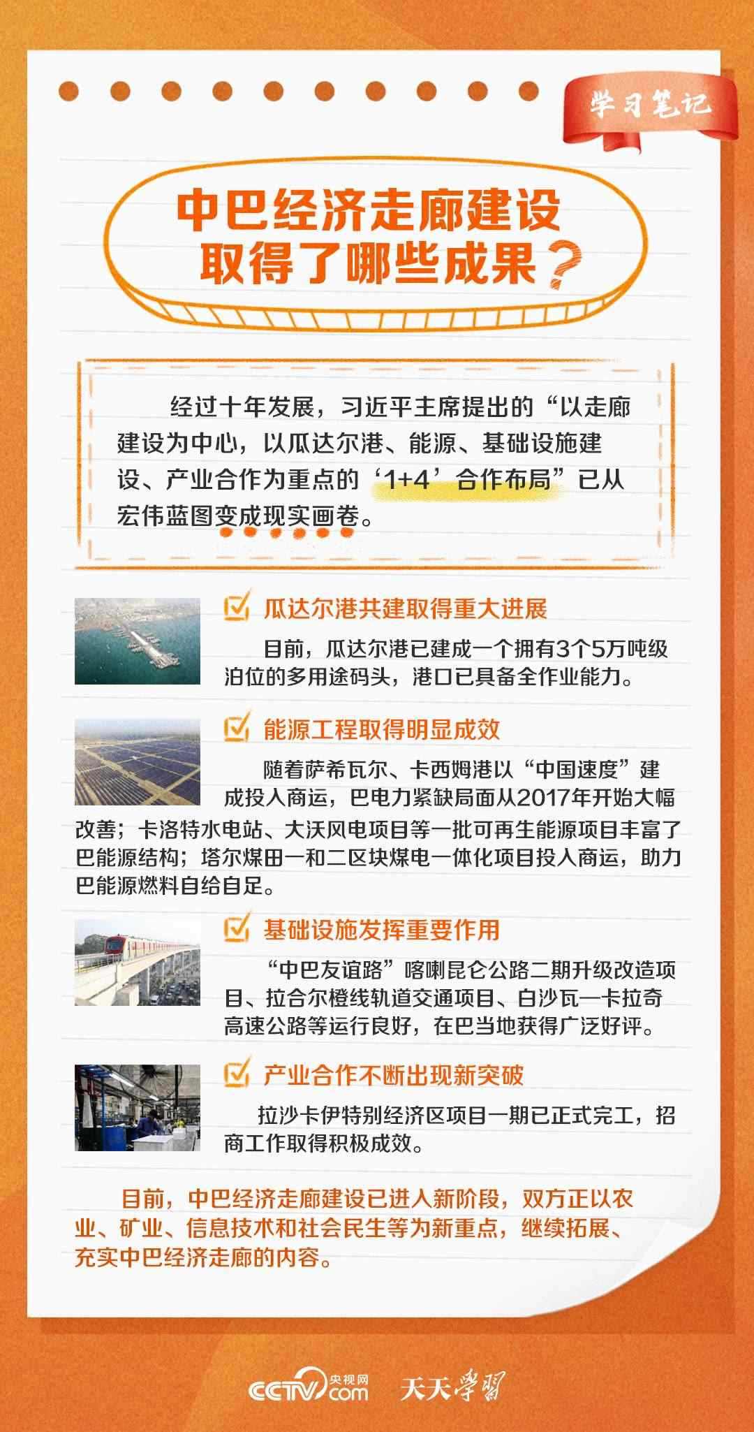 今年是習(xí)近平主席提出共建“一帶一路”倡議十周年,也是中巴經(jīng)濟(jì)走廊啟動(dòng)十周年。經(jīng)過(guò)十年的發(fā)展,中巴經(jīng)濟(jì)走廊已成為中巴友誼“新標(biāo)桿”。央視網(wǎng)《天天學(xué)習(xí)·學(xué)習(xí)筆記》特梳理中巴經(jīng)濟(jì)走廊相關(guān)知識(shí)點(diǎn),與您一起學(xué)習(xí)。