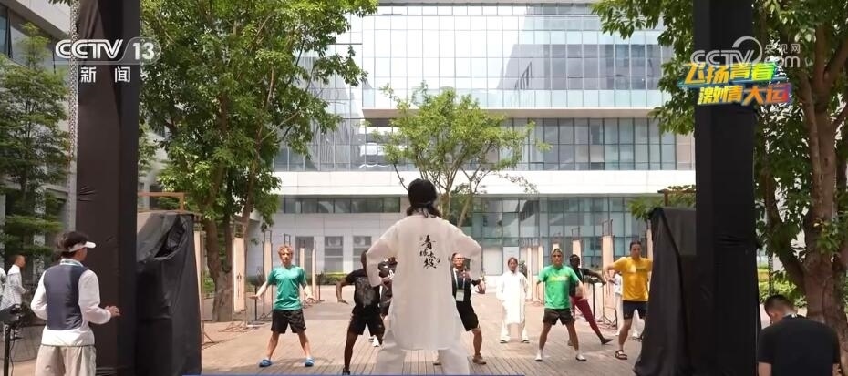 而在大運村的互動體驗中心里,每天上午和晚上都各開設了兩節(jié)太極課,每節(jié)課都會吸引不少外國運動員參與。他們在老師的帶領(lǐng)下,調(diào)整著呼吸,一招一式打得有板有眼,還有人甚至養(yǎng)成了每天打太極拳晨練的新習慣。