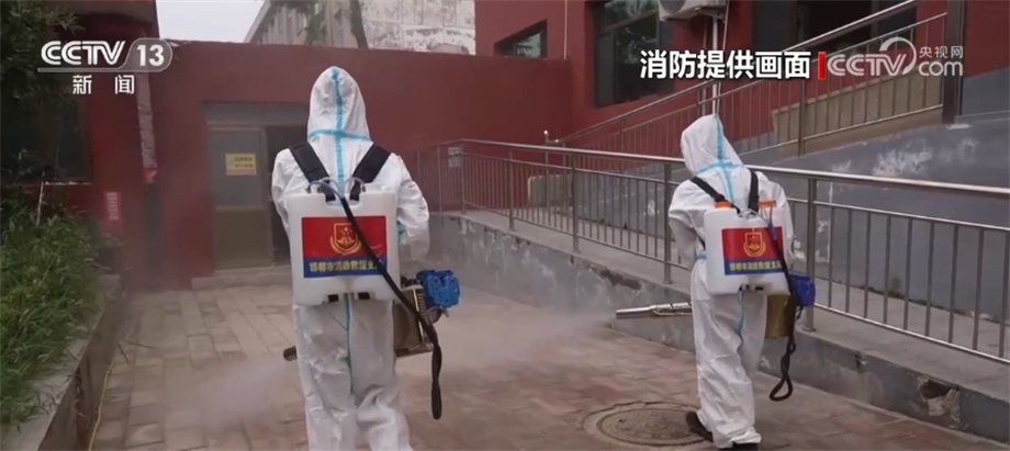 在涿州安泰老人公寓,前幾天的降雨導致公寓的院子、地下室發(fā)生積水,雖然水已經排出,但由于公寓內有百名老人居住,老人抵抗力較低,房屋急需消殺。最近,增援涿州的邯鄲消防救援支隊的16名消防人員攜帶多臺消殺設備來到這里,他們細致地清理打掃院子,對樓道、衛(wèi)生間等區(qū)域進行全面地擦拭、消毒。同時,消防人員為老人們送去方便面、礦泉水等生活物資,保障老人們的生活。