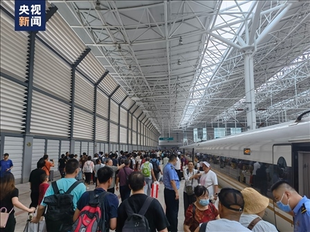 滯留旅客搭乘臨時列車從沿河城站出發(fā)