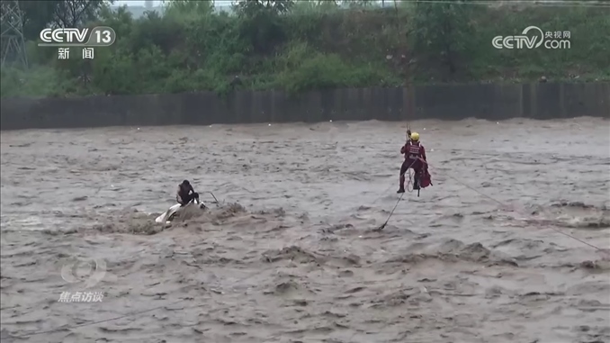 趙亞朋:“大吊車把我吊起來以后,我向下看距離地面有將近50米的高度,看著地面和洪水翻滾的樣子,心里當(dāng)時挺害怕的。因為整個身體在一根繩子上,身體沒有重心,身體不受控制,沒有發(fā)力點。”