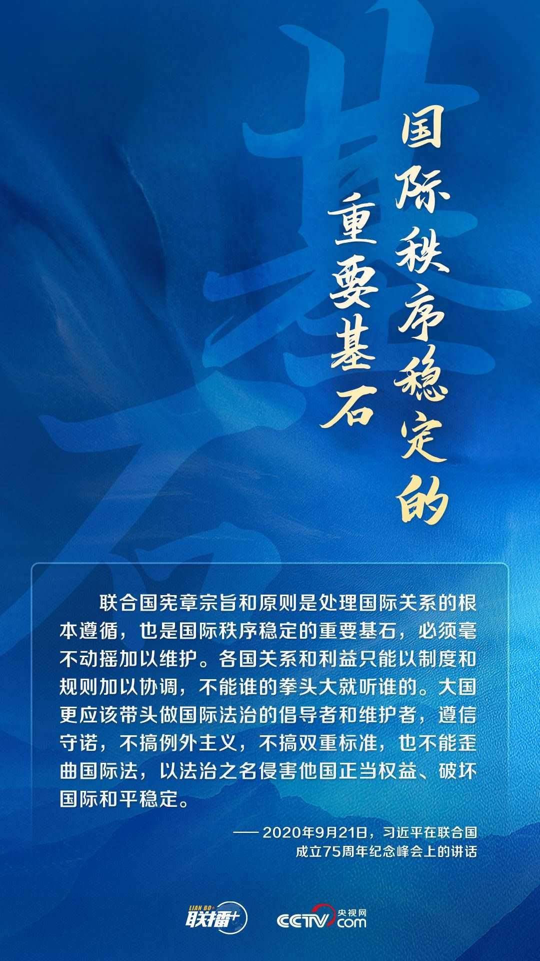 世界上只有一個(gè)體系,就是以聯(lián)合國為核心的國際體系;只有一套規(guī)則,就是以聯(lián)合國憲章為基礎(chǔ)的國際關(guān)系基本準(zhǔn)則。中國始終以實(shí)際行動(dòng)踐行聯(lián)合國憲章宗旨和原則,持續(xù)為人類文明和進(jìn)步事業(yè)貢獻(xiàn)中國方案,承擔(dān)大國責(zé)任,展現(xiàn)大國擔(dān)當(dāng)。