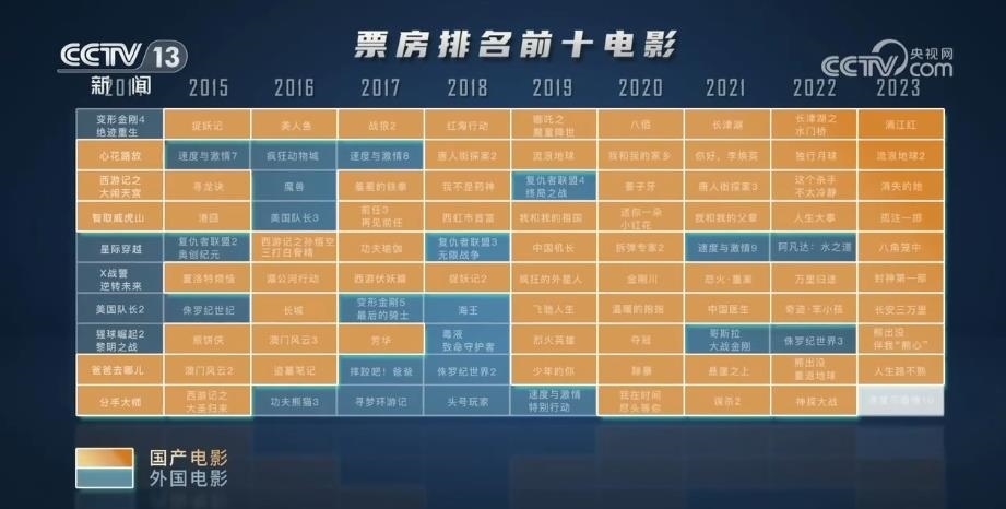 央視網(wǎng)消息:國家電影局最新發(fā)布統(tǒng)計(jì)數(shù)據(jù)顯示,2023年暑期檔電影票房已達(dá)178億元,超過2019年暑期檔總票房,創(chuàng)歷史新高。是什么點(diǎn)燃了觀眾對電影的熱情? 通過對近10年票房前10名的電影片尾字幕提取,用數(shù)據(jù)洞察國產(chǎn)電影的發(fā)展。