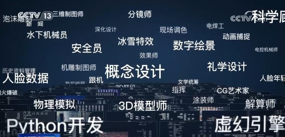 從30多萬字的文本中,AI算法識別出了300多個(gè)電影產(chǎn)業(yè)工種,一條隱藏在幕后的國產(chǎn)電影產(chǎn)業(yè)鏈在眼前展開。這是一個(gè)電影產(chǎn)業(yè)鏈越分越細(xì)、工種越增越多的過程。20多個(gè)新的工種在這10年間誕生,動作捕捉、虛擬拍攝、數(shù)控編程、3D打印等,其中,七成以上的新增工種跟數(shù)字化技術(shù)的進(jìn)步有關(guān)。