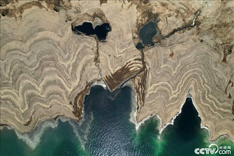 日漸干涸的死海。自1960年以來(lái),死海已經(jīng)失去了三分之一的表面積,藍(lán)色的海水每年后退約一米。