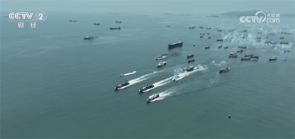 中午12點(diǎn)整,在福州市連江縣的黃岐中心漁港,隨著一聲令下,漁港內(nèi)汽笛長(zhǎng)鳴、彩煙齊放,在指揮船的護(hù)航下,數(shù)百艘漁船有序起航,場(chǎng)面蔚為壯觀。
