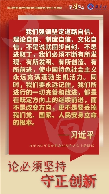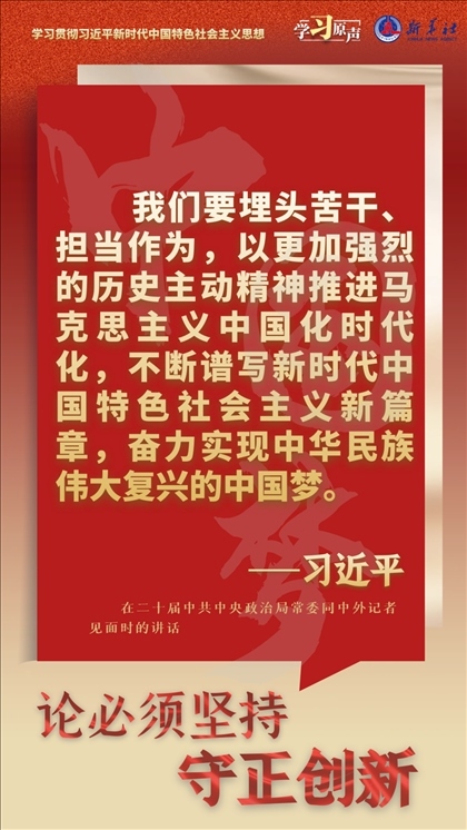 我們從事的是前無古人的偉大事業(yè),守正才能不迷失方向、不犯顛覆性錯誤,創(chuàng)新才能把握時(shí)代、引領(lǐng)時(shí)代。我們要以科學(xué)的態(tài)度對待科學(xué)、以真理的精神追求真理,堅(jiān)持馬克思主義基本原理不動搖,堅(jiān)持黨的全面領(lǐng)導(dǎo)不動搖,堅(jiān)持中國特色社會主義不動搖,緊跟時(shí)代步伐,順應(yīng)實(shí)踐發(fā)展,以滿腔熱忱對待一切新生事物,不斷拓展認(rèn)識的廣度和深度,敢于說前人沒有說過的新話,敢于干前人沒有干過的事情,以新的理論指導(dǎo)新的實(shí)踐。