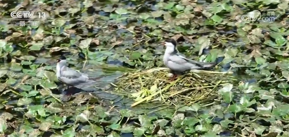 比如,兩地工作人員實(shí)現(xiàn)了聯(lián)合巡河、管護(hù)、治理。元蕩湖生態(tài)岸線的相關(guān)建設(shè),包括我所在的這個(gè)公園和步行橋也是兩地統(tǒng)一審批、接力建設(shè)起來(lái)的。目前,元蕩湖水質(zhì)已經(jīng)達(dá)到國(guó)家考核目標(biāo),生態(tài)岸線占比超過(guò)80%。在湖心的位置有一處水草聚集區(qū)域,船是不會(huì)靠近的,這是人為劃定的水上鳥(niǎo)兒的保育區(qū),能看見(jiàn)不少水鳥(niǎo)在那里嬉戲飛翔。鏡頭拉近,有的鳥(niǎo)兒已經(jīng)在這里筑巢產(chǎn)卵,把家安在了元蕩湖,水質(zhì)好不好,鳥(niǎo)兒最有發(fā)言權(quán)。現(xiàn)在,元蕩湖在水系連通、河道清障、岸坡整治、水源涵養(yǎng)等方面實(shí)現(xiàn)了統(tǒng)一推進(jìn)。